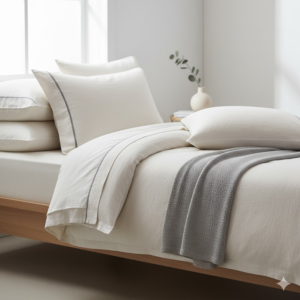 Ausgewählte Stoffe, weich, atmungsaktiv und langlebig – ideal für erholsamen Schlaf und empfindliche Haut.